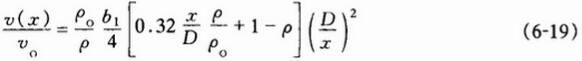 噴射速度隨著軸線距離增大而減小,直到軸線上的某一點(diǎn)噴射速度等于風(fēng)速為止。該點(diǎn)稱(chēng)為臨界點(diǎn),臨界點(diǎn)以后的氣體運(yùn)動(dòng)不再符合噴射規(guī)律。沿噴射軸線的速度分布由下式得出: